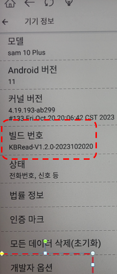 세번째는 빌드 번호라고 하는 메뉴를 열번정도 클릭을 계속하면 개발자 옵션이란 메뉴가 나오게 된다