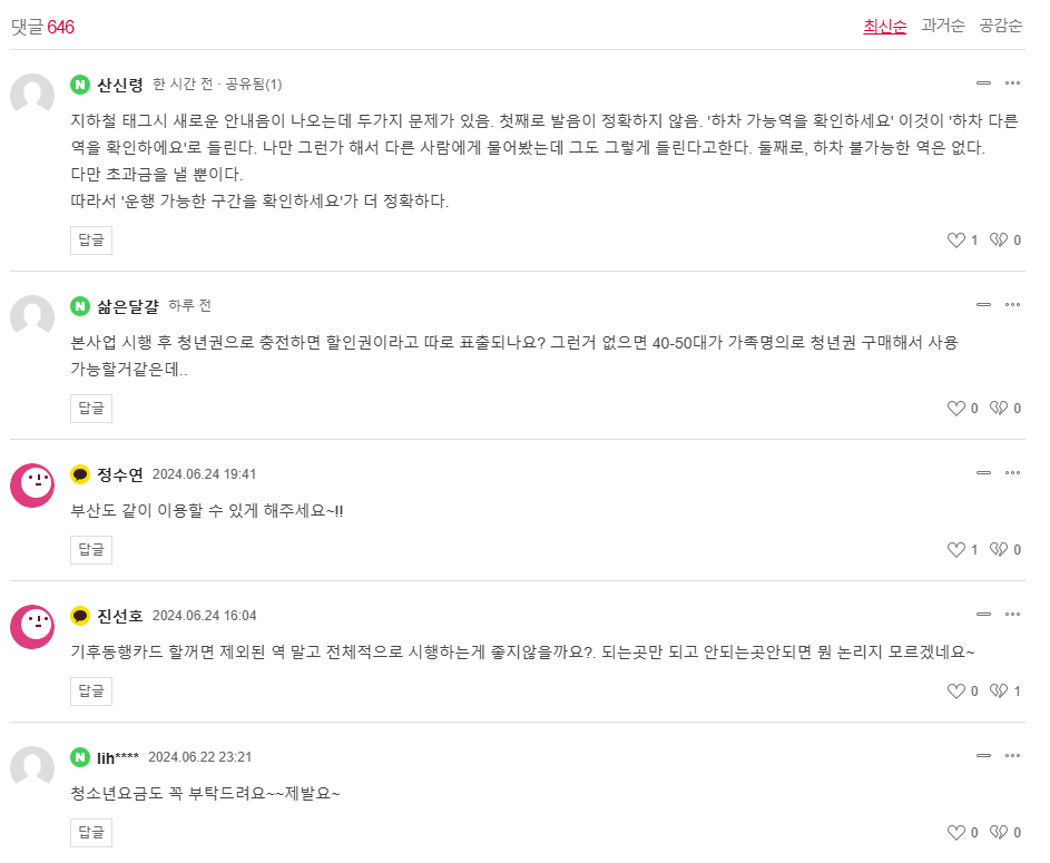 실제 사용하신 분들의 댓글 내용 첨부
