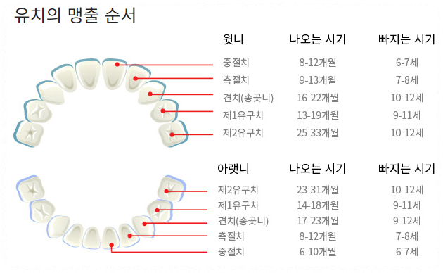 어린이(유아) 영구치는 대략 6세에서부터 나타나기 시작하며, 이 과정은 12세까지 지속됩니다. 아래는 어린이의 영구치가 언제 나타나기 시작하고 완전히 나타나는 시기에 대한 대략적인 정보입니다.