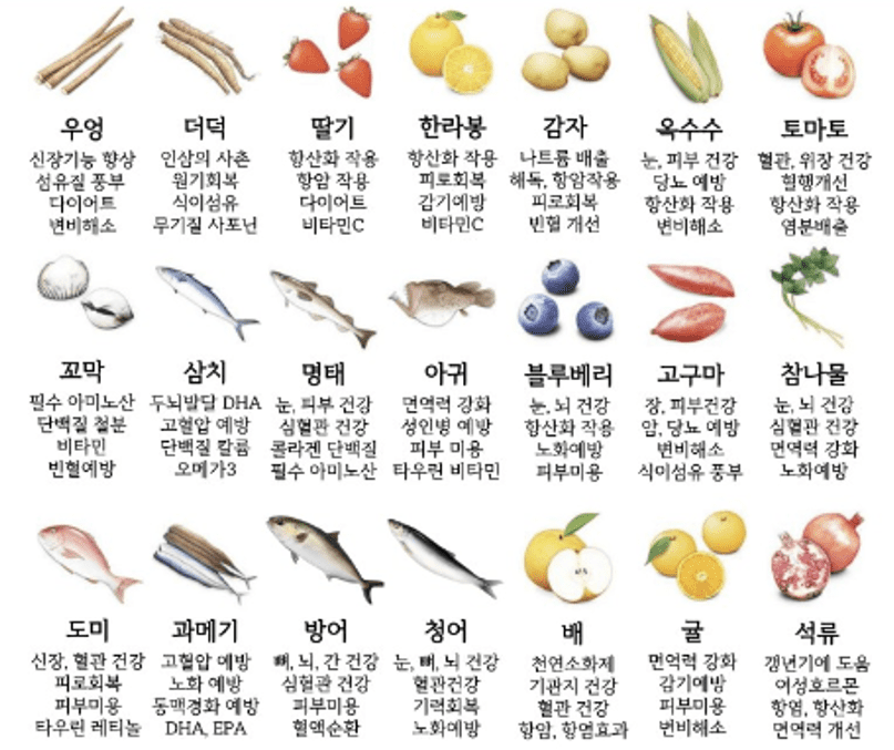 제철 식품을 섭취하면 피로 해소와 다이어트에 도움이 됩니다.