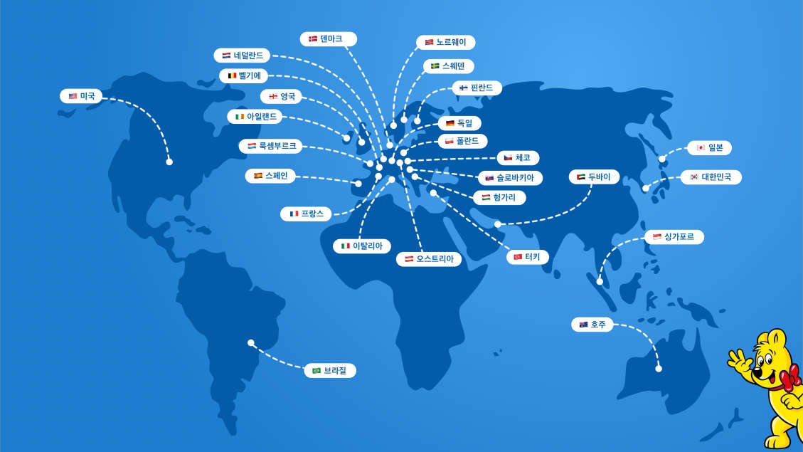 - 하리보의 성공은 독일 시장에서 그치지 않았습니다. 하리보는 과일젤리와 감초젤리 부문의 세계 시장 리더로서 120개국 이상에서 만나볼 수 있습니다! 하리보는 10개국에 분포된 16개 지사에서 생산되고 있으며, 7,000명 이상의 직원들이 소비자들이 좋아하는 제품을 변함없는 최고의 품질로 즐길 수 있도록 최선을 다하고 있습니다.