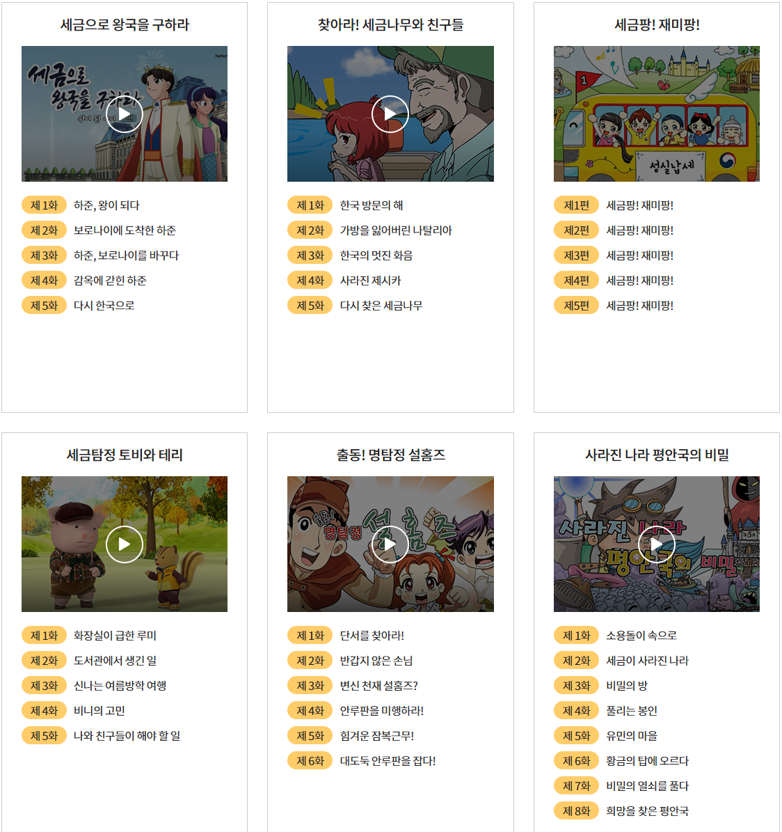 다양한 세금관련 재미있는 교육 만화를 제공