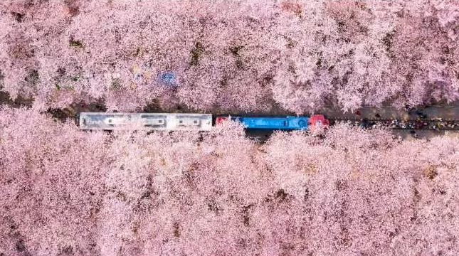 36만 그루 벚나무의 향연에 빠져보자. 우리나라 대표 벚꽃축제 <진해군항제>가 2023년 3월 25일부터 4월 3일까지 열흘간 개최된다. 이 시기 진해는 도시 전체가 벚꽃 천국이지만 그중에서도 ‘로망스다리’로 알려진 여좌천은 1.5㎞ 구간의 개천을 따라 늘어선 벚꽃나무가 일제히 꽃망울을 터뜨려 하늘을 뒤덮으며 절경을 이룬다. 경화역 철길 따라 늘어선 아름드리 벚나무에서 나풀나풀 흩날리는 새하얀 꽃비는 낭만 그 자체. 안민고개의 십리벚꽃길은 드라이브 코스로 일품이며, 제황산공원에 올라 진해탑에서 시가지를 내려다보면 중원로터리를 중심으로 100여 년 전 근대건축물과 벚꽃 군락이 어우러진 평온한 도시 풍경을 한눈에 담을 수 있다.