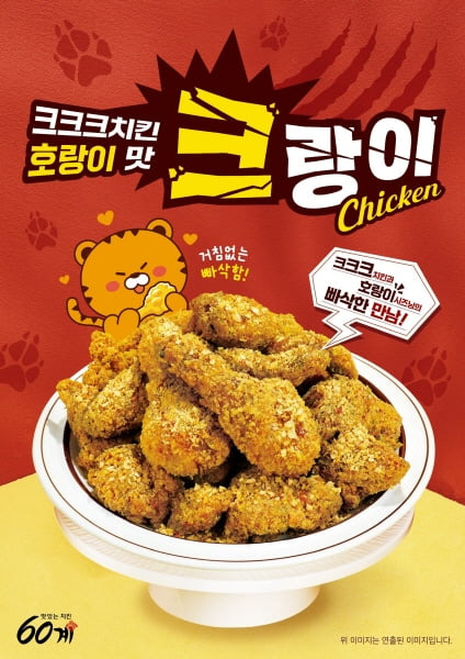 60계 치킨의 신메뉴인 크랑이치킨은 크크크 치킨의 바삭함과 호랑이 치킨의 매콤한 시즈닝을 결합한 메뉴입니다. 가격은 약 22,900원이며, 순살 옵션을 선택할 경우 1,000원이 추가됩니다