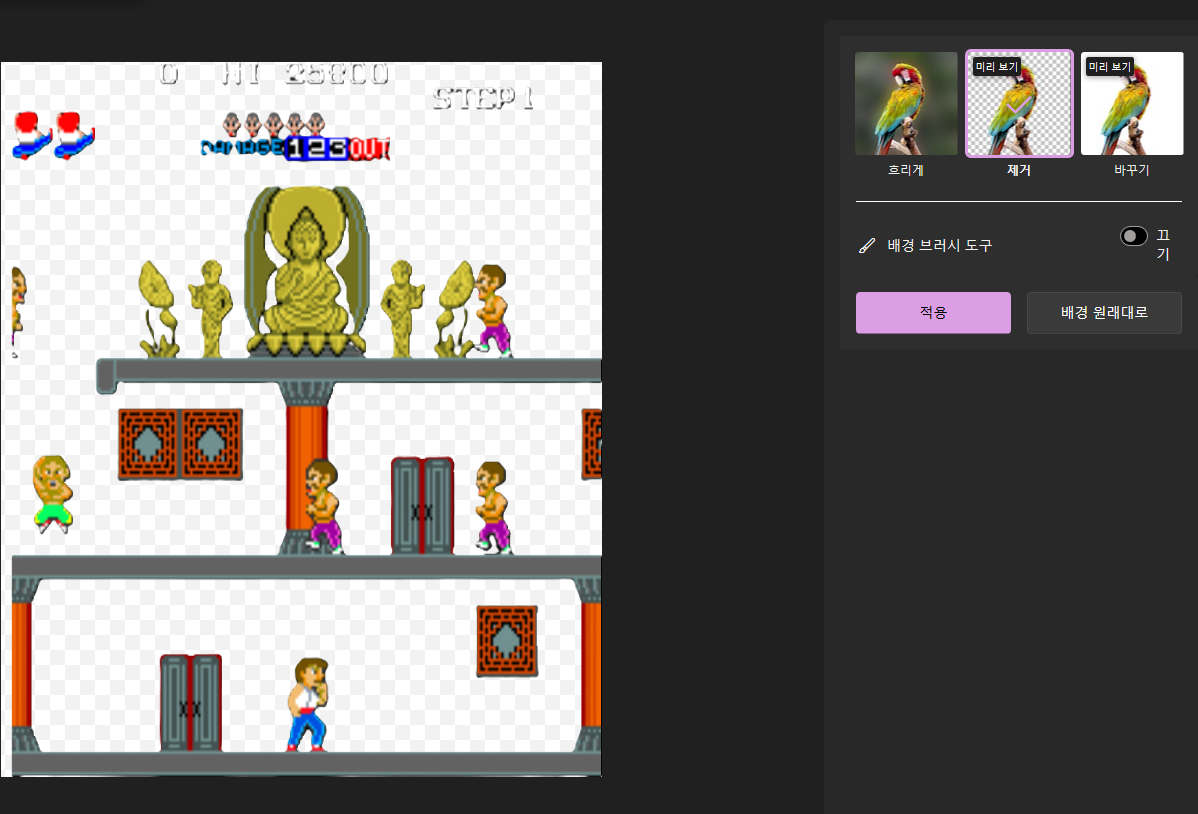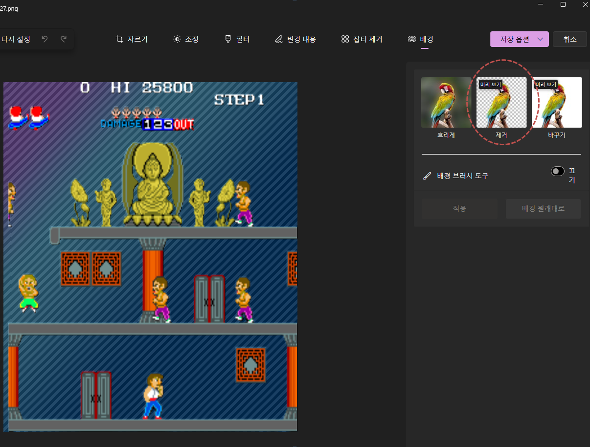 다섯번째, 마지막으로 적용을 누르고 저장하기를 누르면 배경이 제거된 완성형 사진이 생성되게 됩니다.