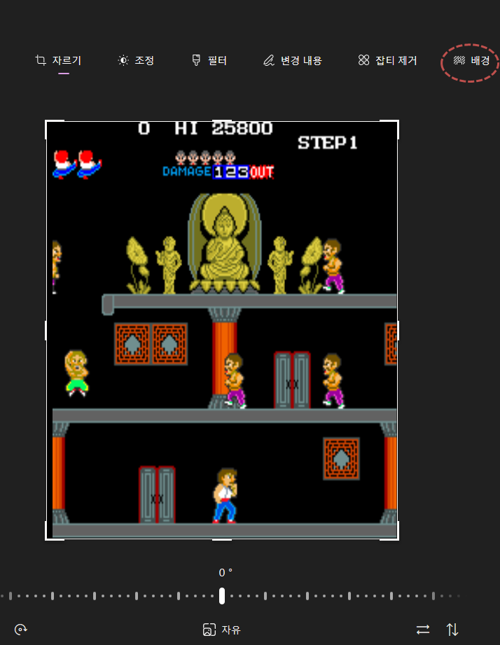 네번째, 편집 화면으로 변경 되는데 그곳에서 배경을 누릅니다. 거기서 오른쪽 제거를 클릭하고