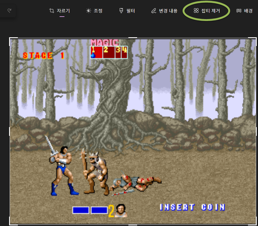 이번에는 아래 보이는 이미지 중 쓰러진 기사의 무기를 AI지우개를 사용해 지워보도록 하겠다.
